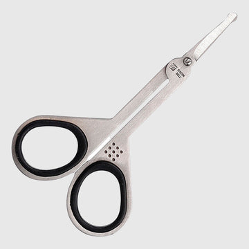 En saks med avrundede tupper, noe som gjør den perfekt til stussing av blant annet nesehår. Saksen er av rustfritt stål og har gummibelegg på ringene for ekstra komfort.