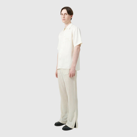 Copenhagen-based Soulland was started by Silas Adler and Jakob Kamp-Berliner back in 2002. With roots in skateboarding and Scandinavian minimalism, the brand features classic silhouettes, but includes more avant-garde pieces such as silk shirts and jacquard knits. The brand has turned its focus towards sustainable production in the later seasons, and Soulland’s aim is to produce a 100% sustainable clothing line.