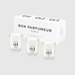 This set is the ideal gift to please your loved ones! Composed of Bon Parfumeurs three best-selling candles, it invites you to discover our collection. Its mini format (3x70g) allows you to test and renew your home fragrance according to your desires.