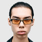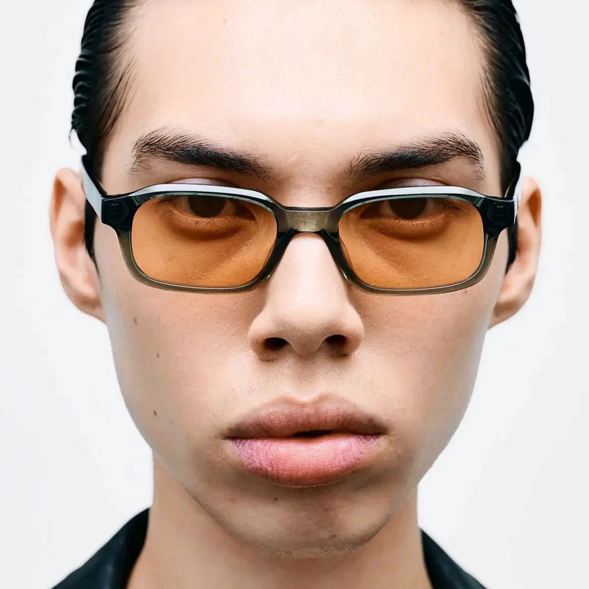 The Hanky features a captivating "Crystal Duck Green" acetate frame, offering a unique translucent quality that catches the light beautifully. Complementing this distinctive frame is a set of subtly "Faded Orange" lenses, adding a vintage-inspired warmth and a touch of effortless cool.