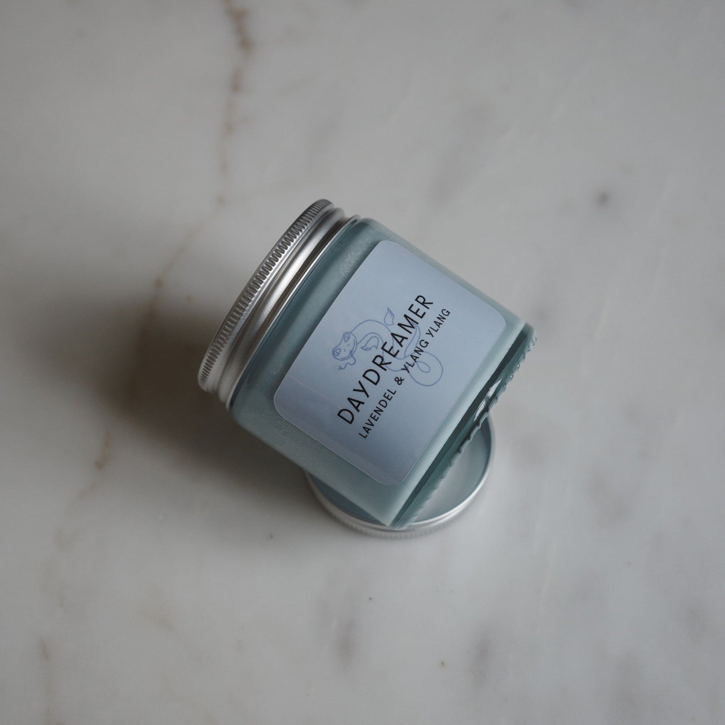 Natural scented candle from Oslo-based Fredens Krem made with organic soy wax and fragranced with a unique blend of essential oils including bergamot, lavender and ylang ylang.