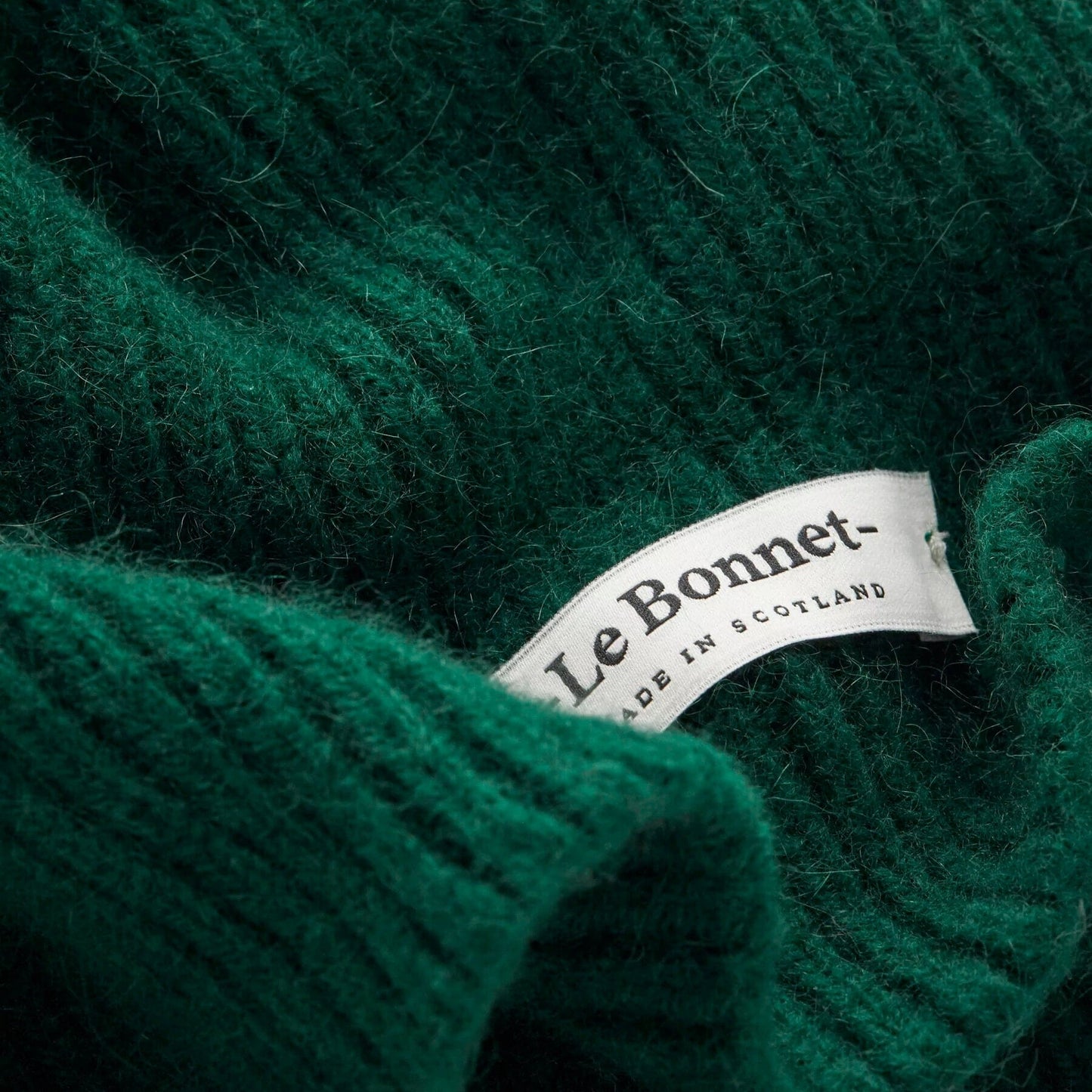 The ultimate beanie from Amsterdam-based Le Bonnet, made in Scotland with lambswool and Caregora™-certified angora. The Caregora™ classification ensures the most stringent standard of animal welfare. Knit with thick ribs for elasticity and optimal warmth.