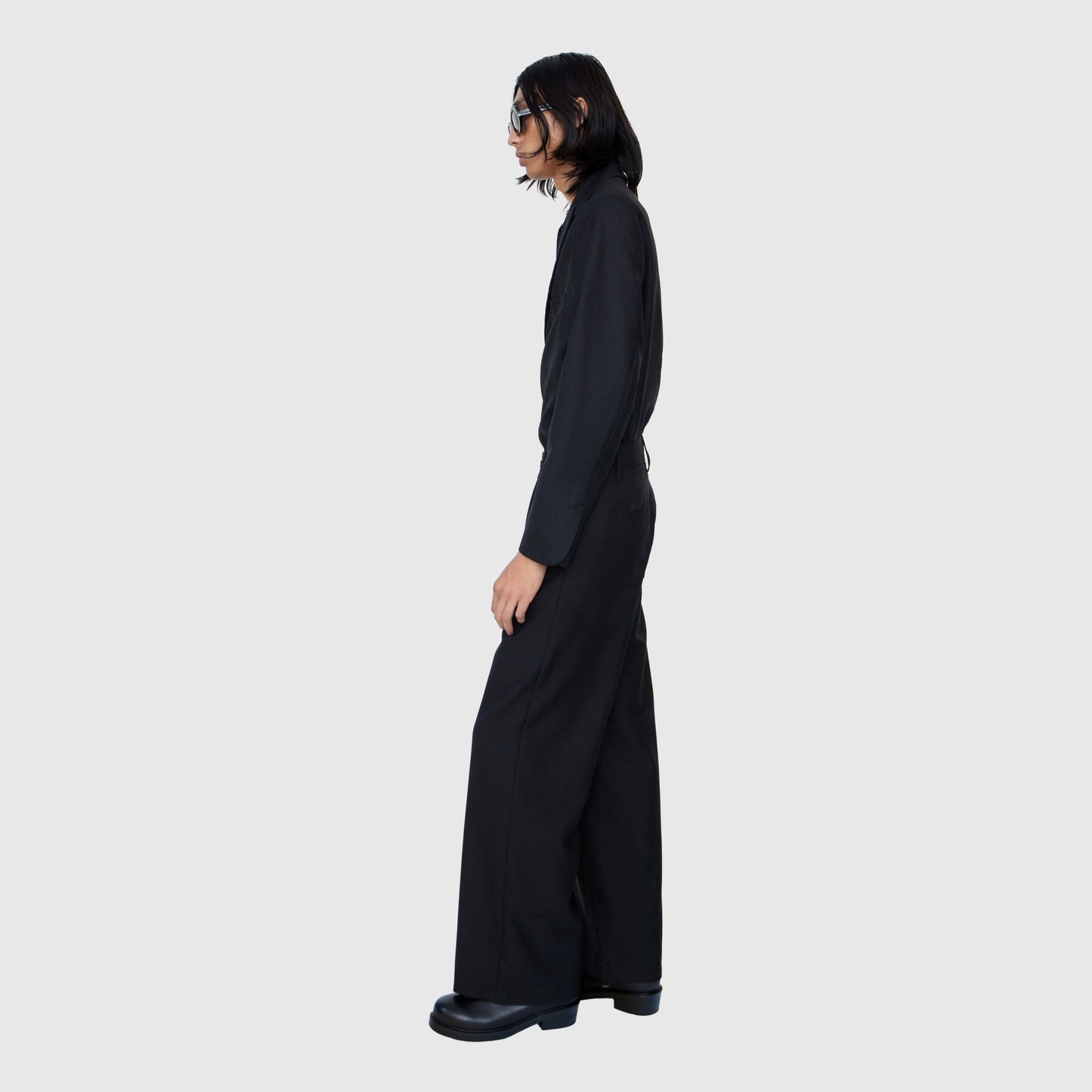 The Jiro Trouser is a loose fitted trouser with a high waist and a wide leg. It features two front pockets and two back patch pockets.